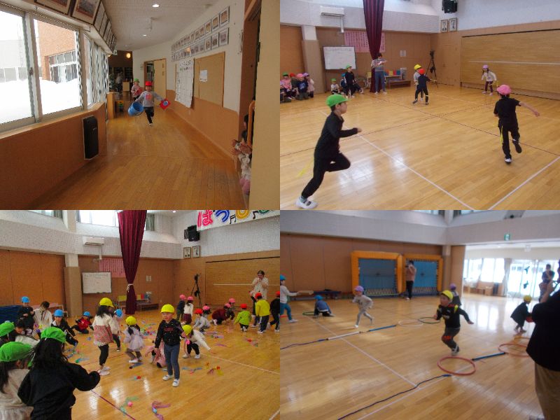 2種目目『しっぽ取り競争』年長中さんチームと年少チームに分かれて勝負しました