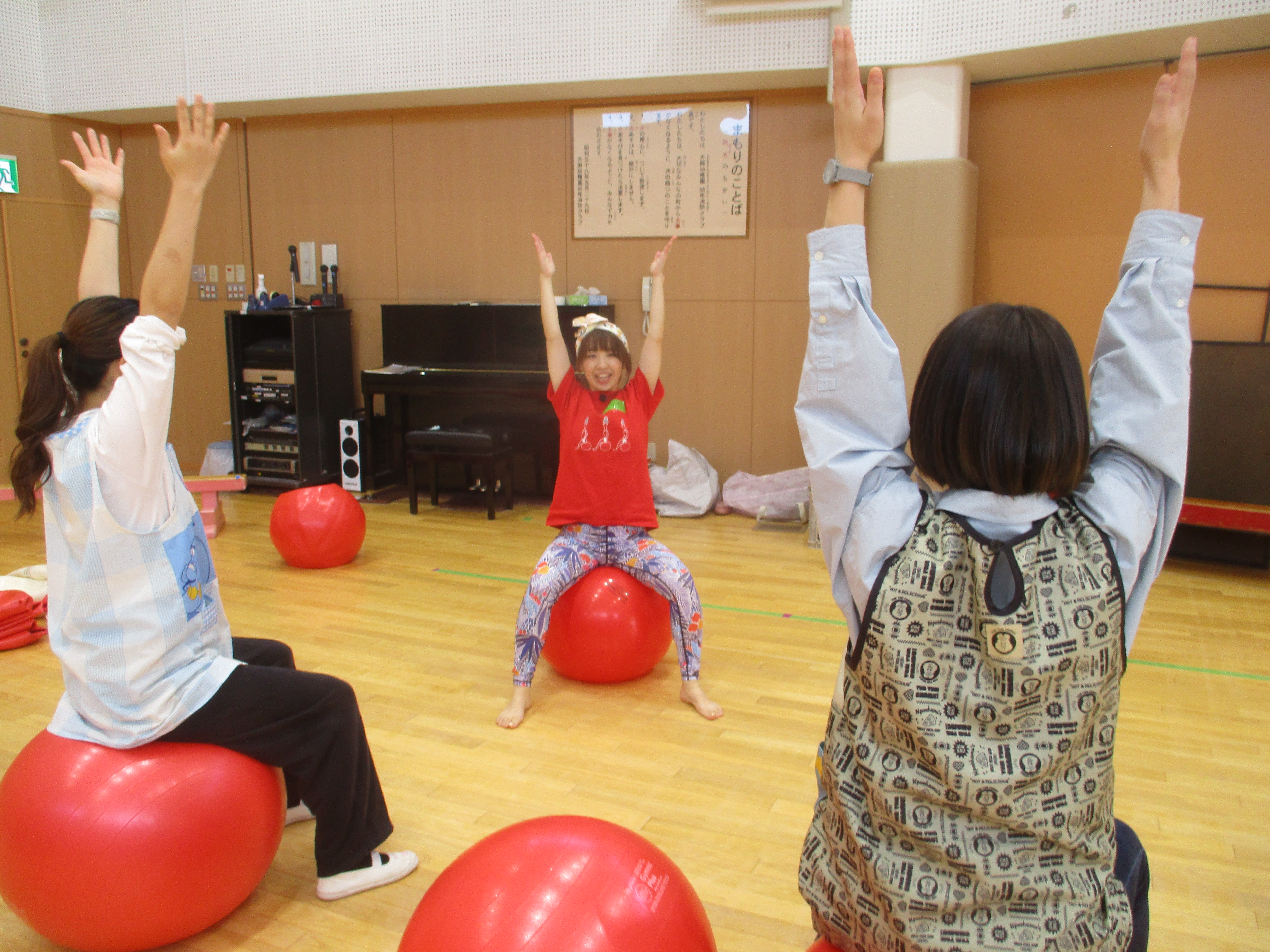 そして特別企画バランスボール教室がスタート今回講師として、一般社団法人體力メンテナンス協会認定バランスボールインストラクターの🎀まつざきえりかさん🎀をお招きし、カラダを動かしリフレッシュができるような、バランスボールの運動を教えて頂きました。
