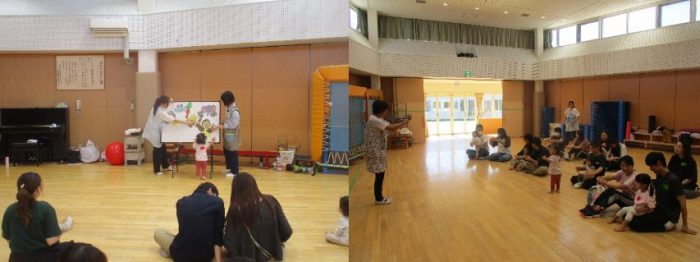 いっぱい遊んだ後は、🐘動物🦒が出てくるクイズや🐼手遊び🐰をして活動が始まりました