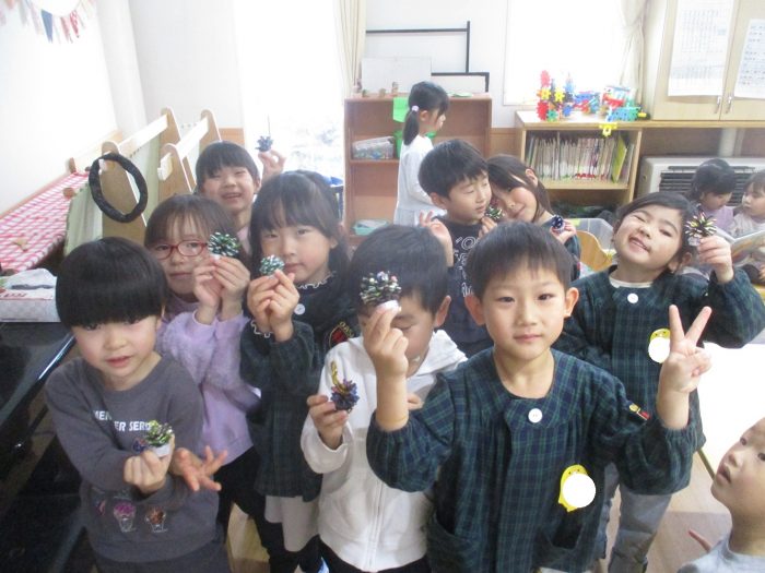 手作りの“松ぼっくりツリー”を頂き大喜びでした