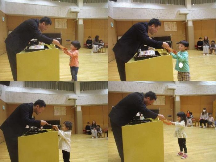 園長先生から、お祝いのお話も上手に聞けていました![]()