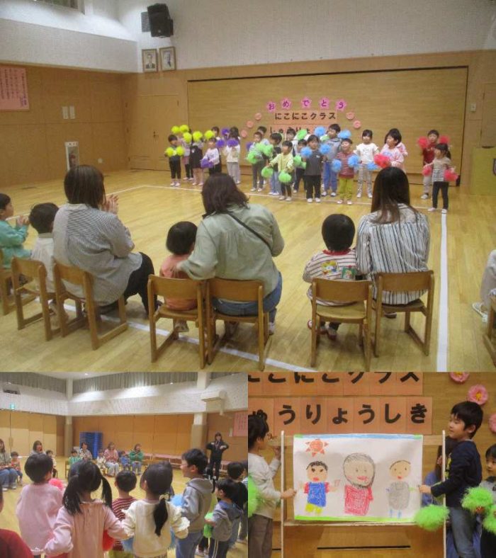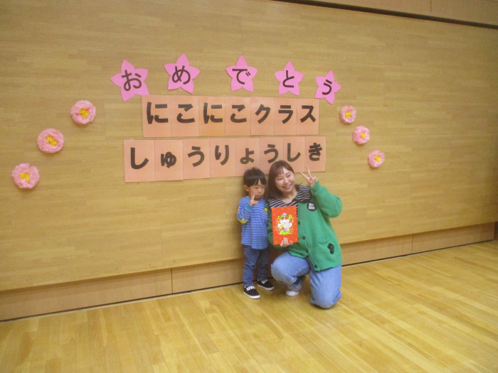 今日は、にこにこクラスの修了式🌸1年間の振り返りをしながら、ひとつ大きくなったことをお祝いする日です