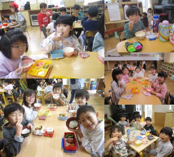 年長さんが春に田植えをし、秋には稲刈り、クラスで脱穀をして、美味しいご飯が出来るまでを知った子ども達